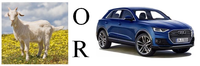 Based on whether you stay on the door or choose to switch, you can go home either riding a goat or a car.